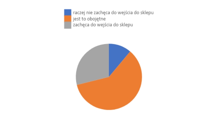 60% badanych odpowiedziało że jest to dla nich obojętne, 29% zachęciło do wejścia, tylko 11% oceniło że fakt braku cen na witrynie raczej nie zachęca do wejścia.